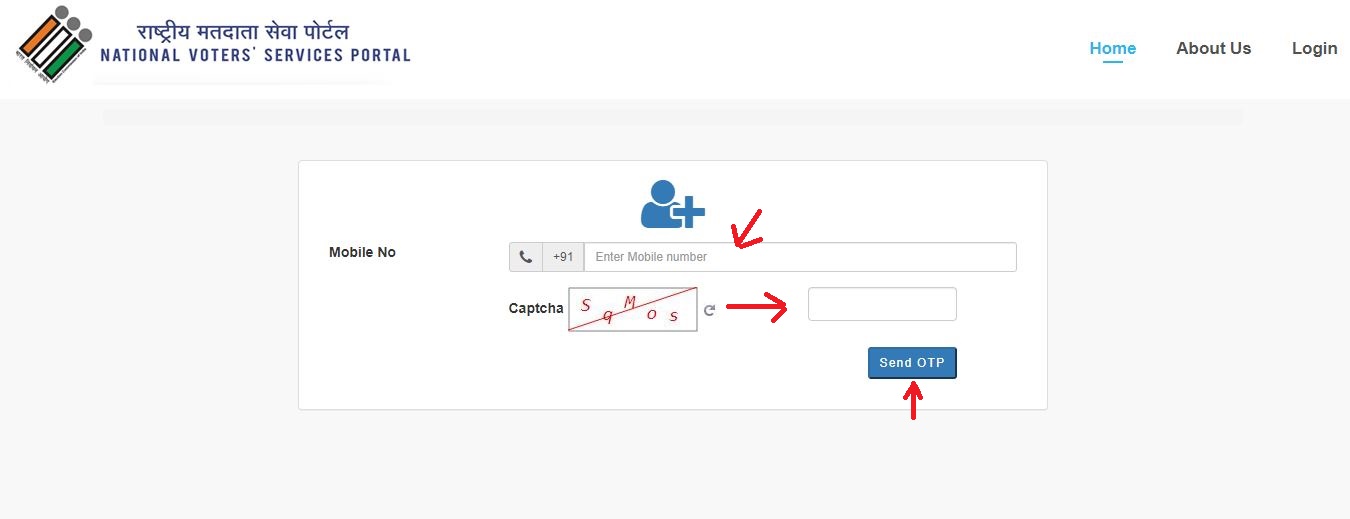 · On next window entre your mobile no and type capture code and click on Send OTP |