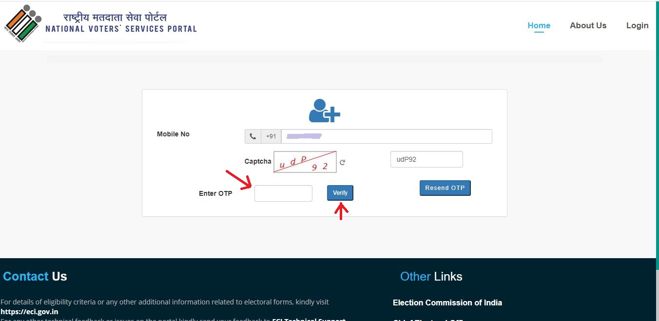 · 6 digits OTP Received on your mobile enter OTP and Click on Verify |