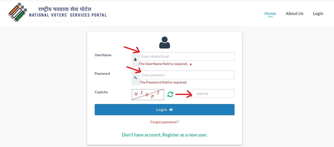 If have EPIC Number Enter EPIC Number, Email Id , Password ,Re-Enter password(Confirm) If Don’t have Epic Number Enter First Name Last Name, Email Id , Password ,Re-Enter password(Confirm) Click on Register